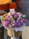 Ніжне поєднання гортензій, півоній, кущових троянд, фрезії та евкаліпту (97843)